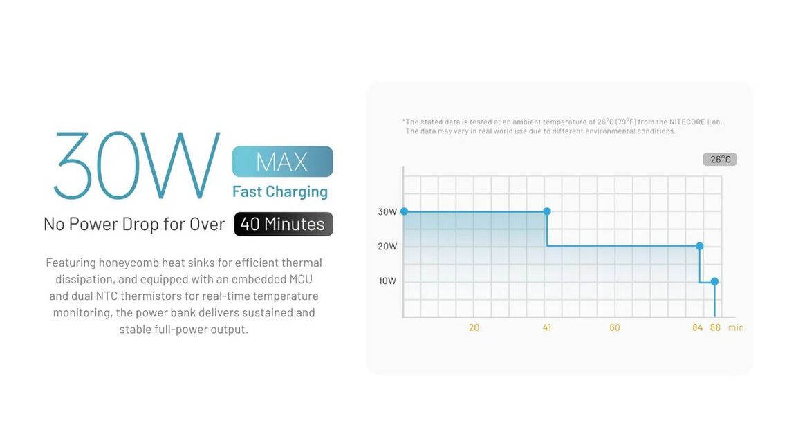 Input (USB-C): 5 V⎓2 A / 9 V⎓3 A / 12 V⎓2.5 A (30 W max)