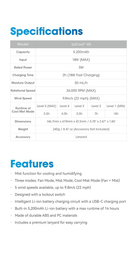 Because sometimes the Kiwi sun decides it’s got a personal vendetta against you. The izzCool 40 steps in with the perfect combo of airflow and misting to take the edge off. Simple, effective, and cool as an ice block on a hot arvo.