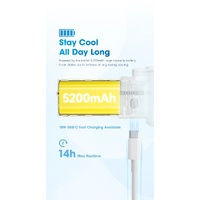 5,200 mAh keeps it humming for up to 14 hours, depending on how cooked you are and how high you crank it. When it’s time to juice up, the 18 W fast-charge gets you sorted in about 2 hours — barely enough time to complain about the heat again.