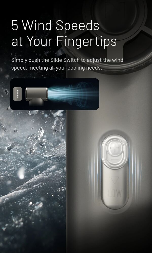 The slider interface is dead simple: slide through five wind levels, up to 11 m/s (that’s roughly 25 mph for friends overseas). With the motor revving at 36,000 RPM max you’ll feel a proper blast, not just a faint breeze. Ideal for when the reels stop turning and the hidden mozzie attack begins.