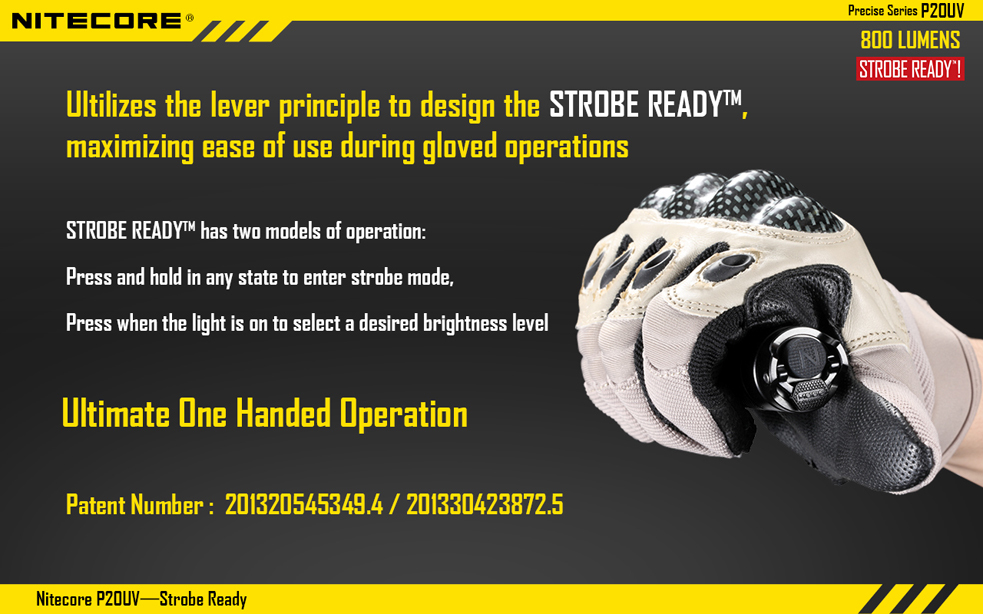 Controlling the intuitive interface can easily be done with one hand via the dual-switch tail cap. You get a dedicated strobe button, which is constructed from metal and can be accessed from any state.