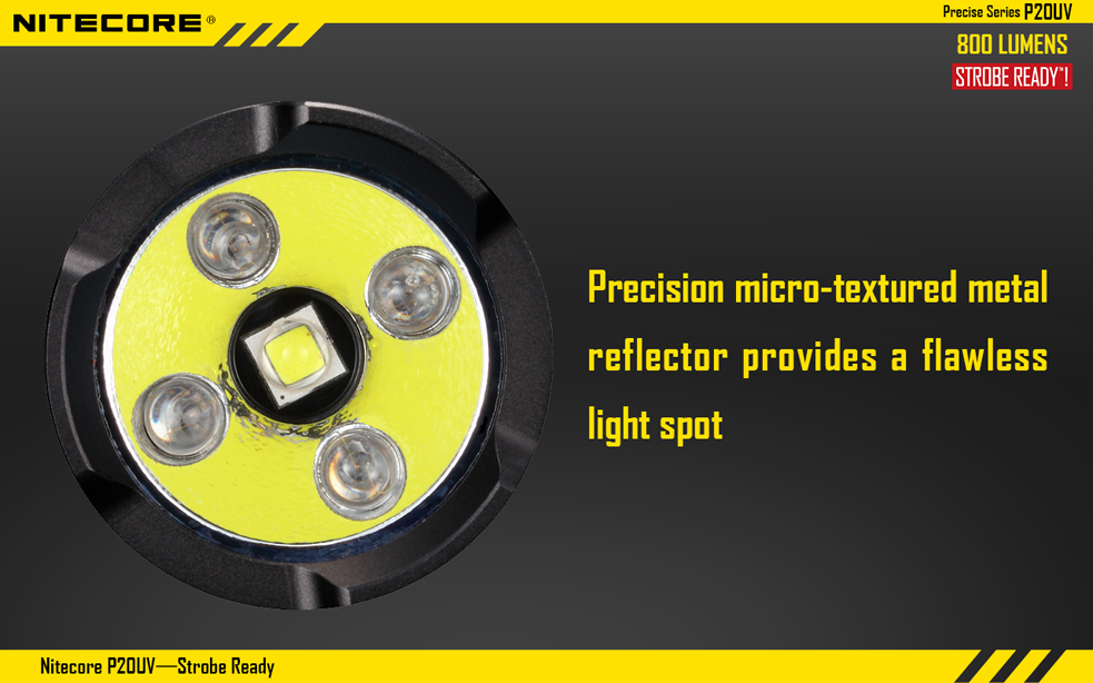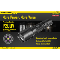 Nitecore has added an ultraviolet version of the P20 to the Precise Series. You still get the same scratch-resistant anodized aluminum body, dual-switch tail cap, intuitive interface, just with the addition of four secondary ultraviolet LEDs.