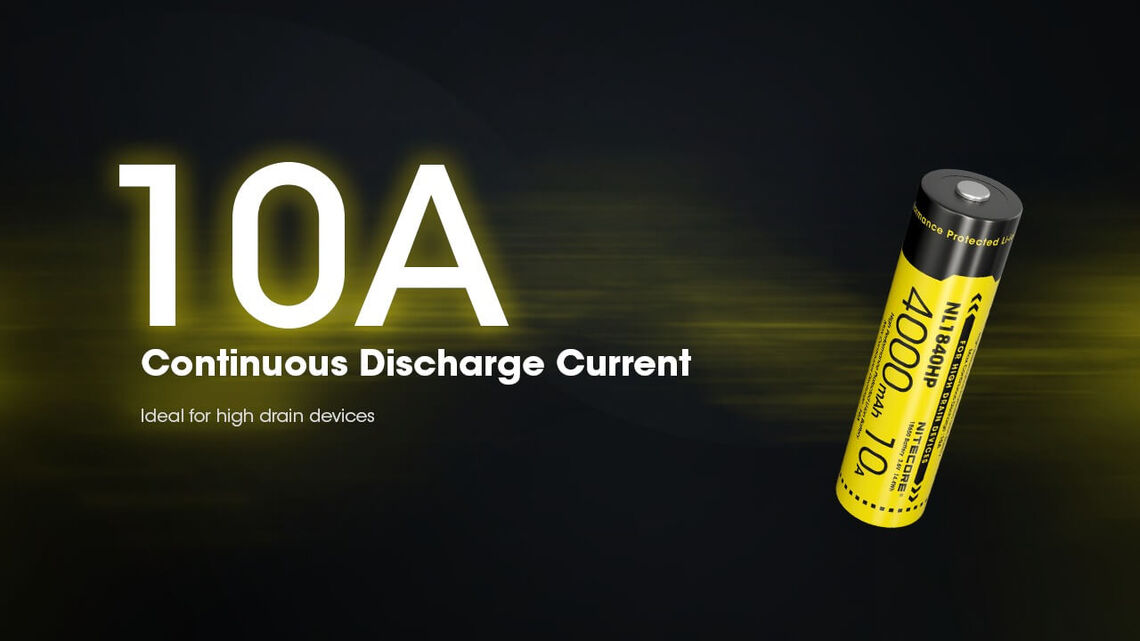 From Nitecore's latest battery generation, the NL1840HP stands out with an impressive 4000mAh capacity, making it an excellent choice for high-drain devices due to its continuous 10A discharge current. Endowed with Nitecore's hallmark safety features and quality engineering, the NL1840HP stands as a testament to the brand's reputation as a reliable source of rechargeable Li-ion batteries.